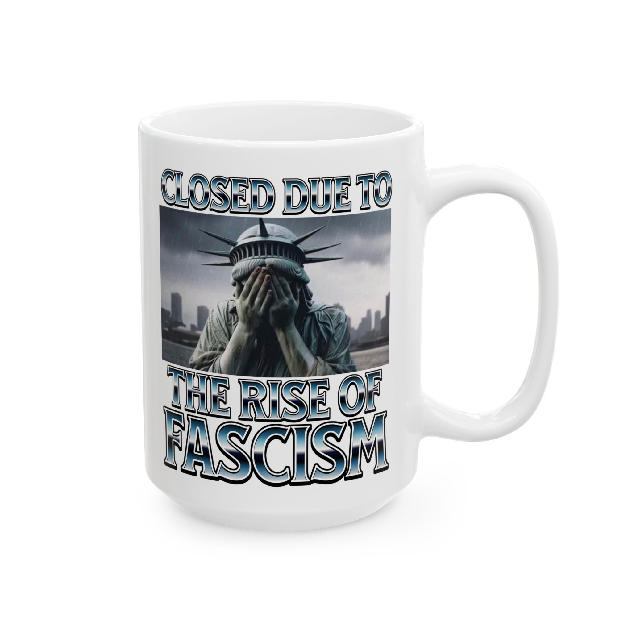 Closed Due to the Rise of Fascism 15 oz. Ceramic Coffee Mug -
